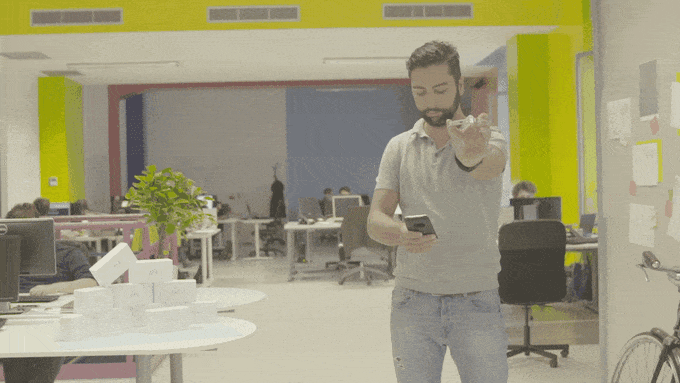 - Flying mode, where the device is held horizontally and replaces a classic controller. Once you’ve found the perfect positioning for the shot, AirSelfie stays still, thanks to the hovering function.